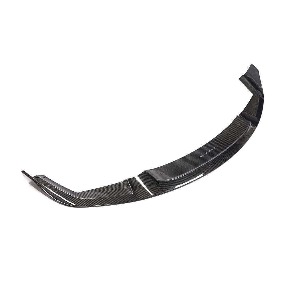MP Style Carbon Fiber Front Lip with a glossy carbon finish for an aggressive, eye-catching look.
